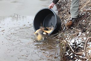 Foto’s van de karperuitzet vijver Boslaan te Eeserveen: